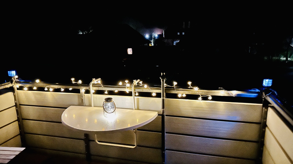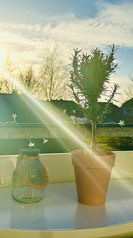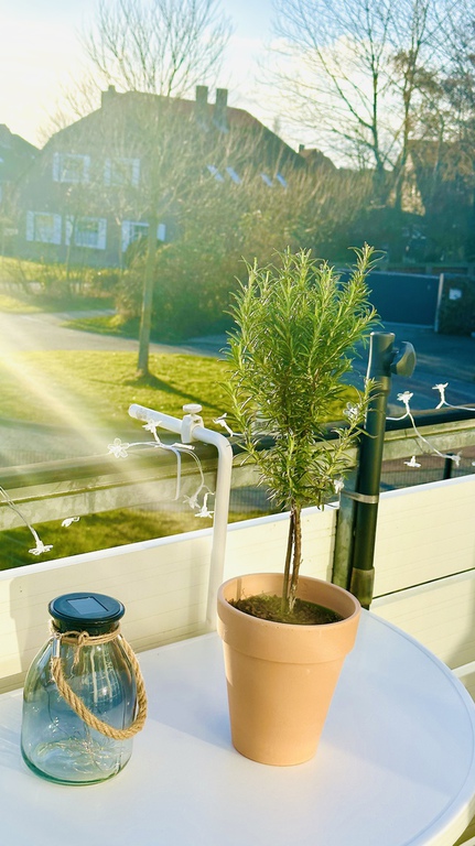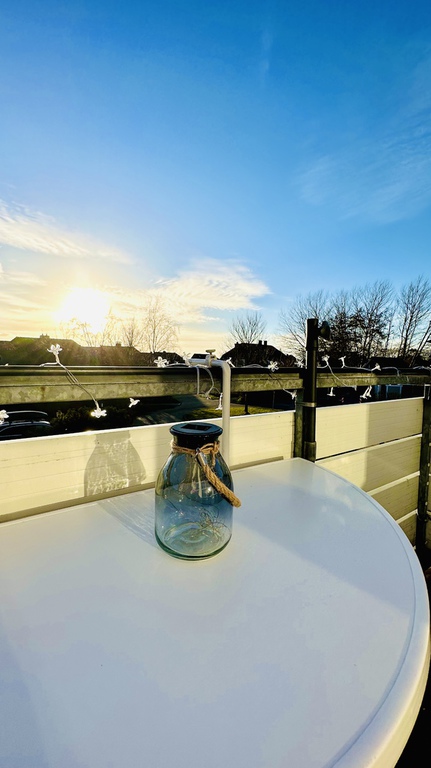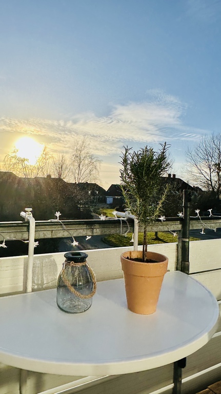 Der sonnige Balkon lädt den ganzen Tag zum entspannen ein.