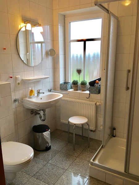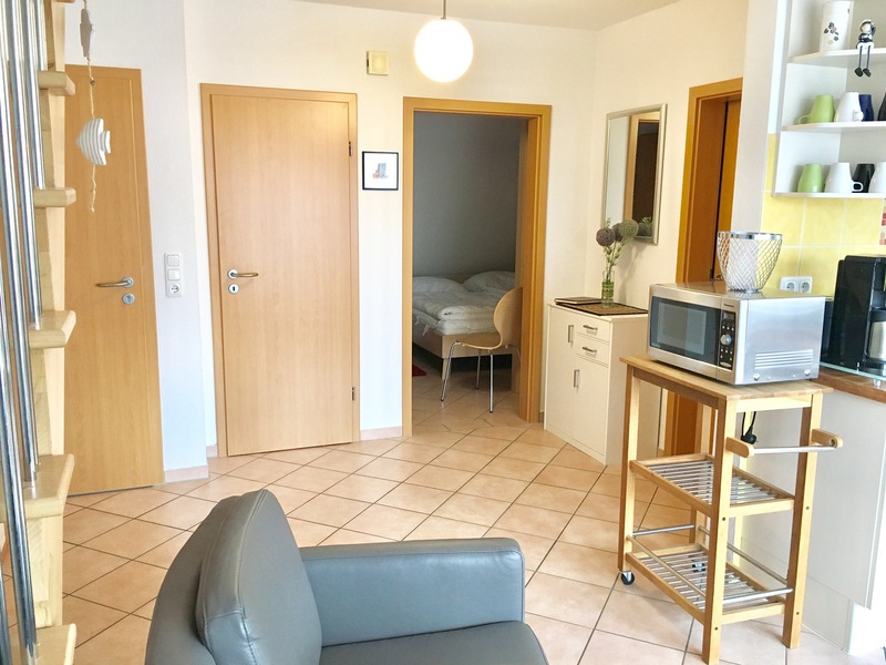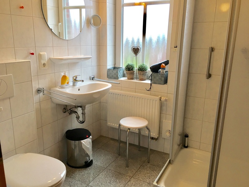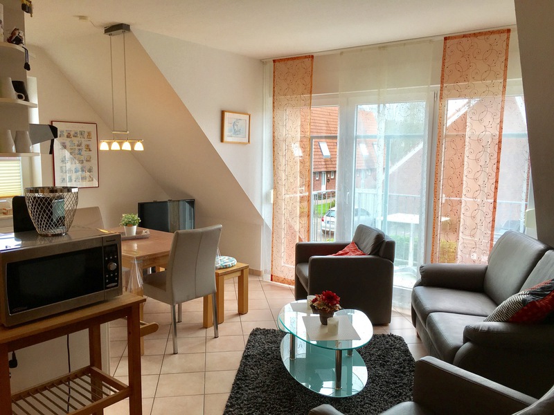 Modern eingerichtete Obergeschosswohnungfür 4 Personen. Das liebevoll ausgestattete Wohnzimmer mit Sat-TV und Musikanlage mit angrenzendem Essplatz bietet Ihnen alles für einen erholsamen Urlaub. Die Küche ist mit allen wichtigen Küchenutensilien eingerichtet. Der Balkon lädt Sie auf entspannte Momente ein. Das Badezimmer ist ausgestattet mit einer Dusche, WC und einem Handwaschbecken. Die beiden Schlafzimmer sind hell und freundlich eingerichtet, im Kinderzimmer findet sich ein 2. Fernseher. Ein Parkplatz gehört zur Wohnung dazu.